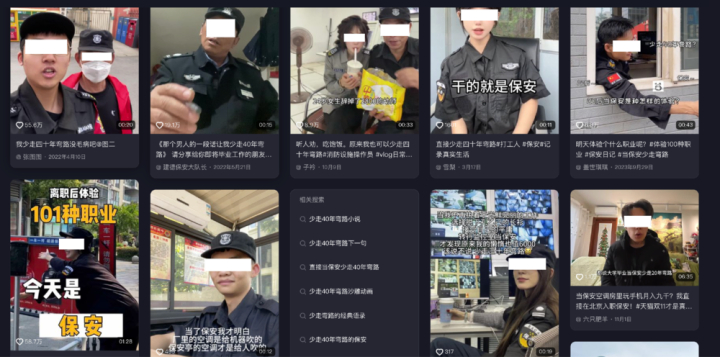 这可不是说说而已。现在只要随手打开短视频App就能看见满屏的年轻保安。