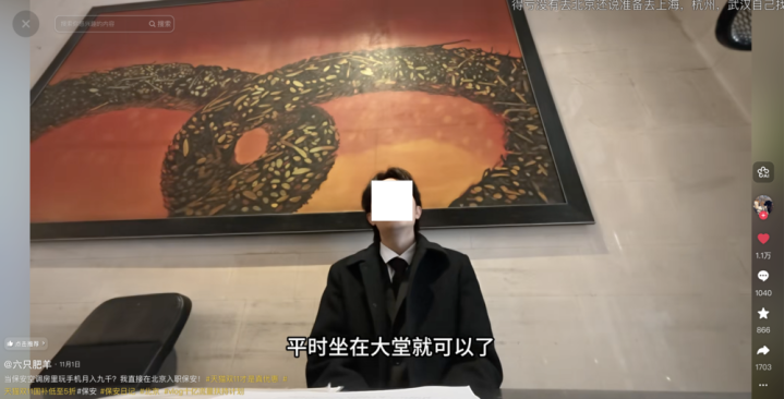 拍摄这一类视频的博主多是专业KOL或者留学生,而拍摄的目的也很简单:通过展示保安一天的生活来消除观众们的信息茧房。